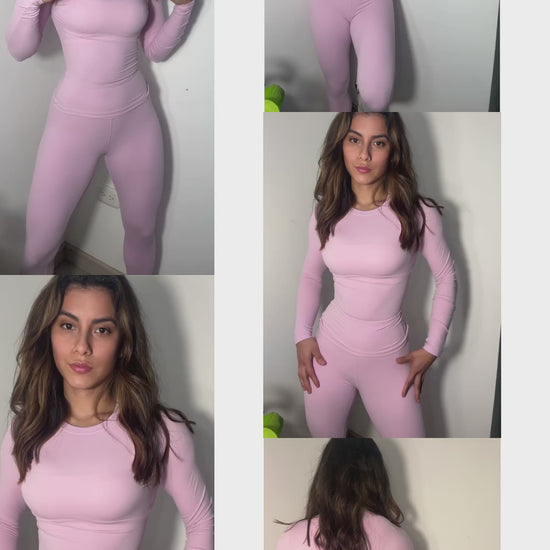 El color rosa pastel le da un toque delicado y moderno, mientras su diseño ceñido resalta la silueta de forma natural. Ideal para usarlo solo o en conjunto con leggins o chaquetas.