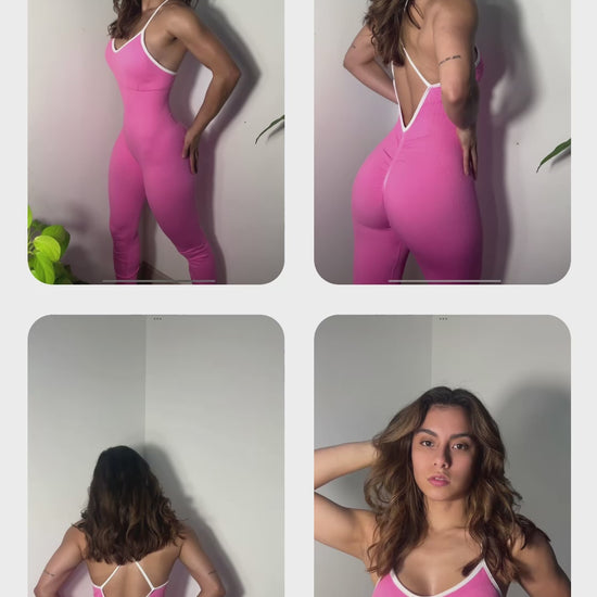 Confeccionado en tela acanalada de secado rápido, este enterizo absorbe el sudor eficazmente, manteniéndote fresca durante tus rutinas más exigentes. El tejido elástico se ajusta como una segunda piel, resaltando tus curvas y ofreciendo un efecto moldeador sin sacrificar comodidad.