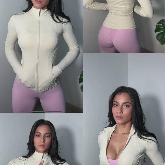 Eleva tu look deportivo con nuestra chaqueta SculptFit Zip-Up en tono ivory glow, diseñada para resaltar tu silueta con un ajuste ceñido y estructurado. Su corte ergonómico moldea la cintura y realza la figura, mientras que su tela elástica de alta compresión proporciona soporte y comodidad durante cualquier entrenamiento o para uso casual.