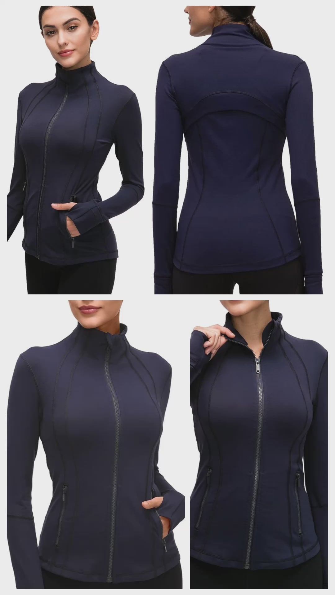 Con detalles de diseño que hacen la diferencia —como costuras estratégicas que estilizan, cierres laterales funcionales, y agujeros para el pulgar que ofrecen estabilidad y estilo—, esta chaqueta es el balance perfecto entre elegancia atlética y rendimiento.