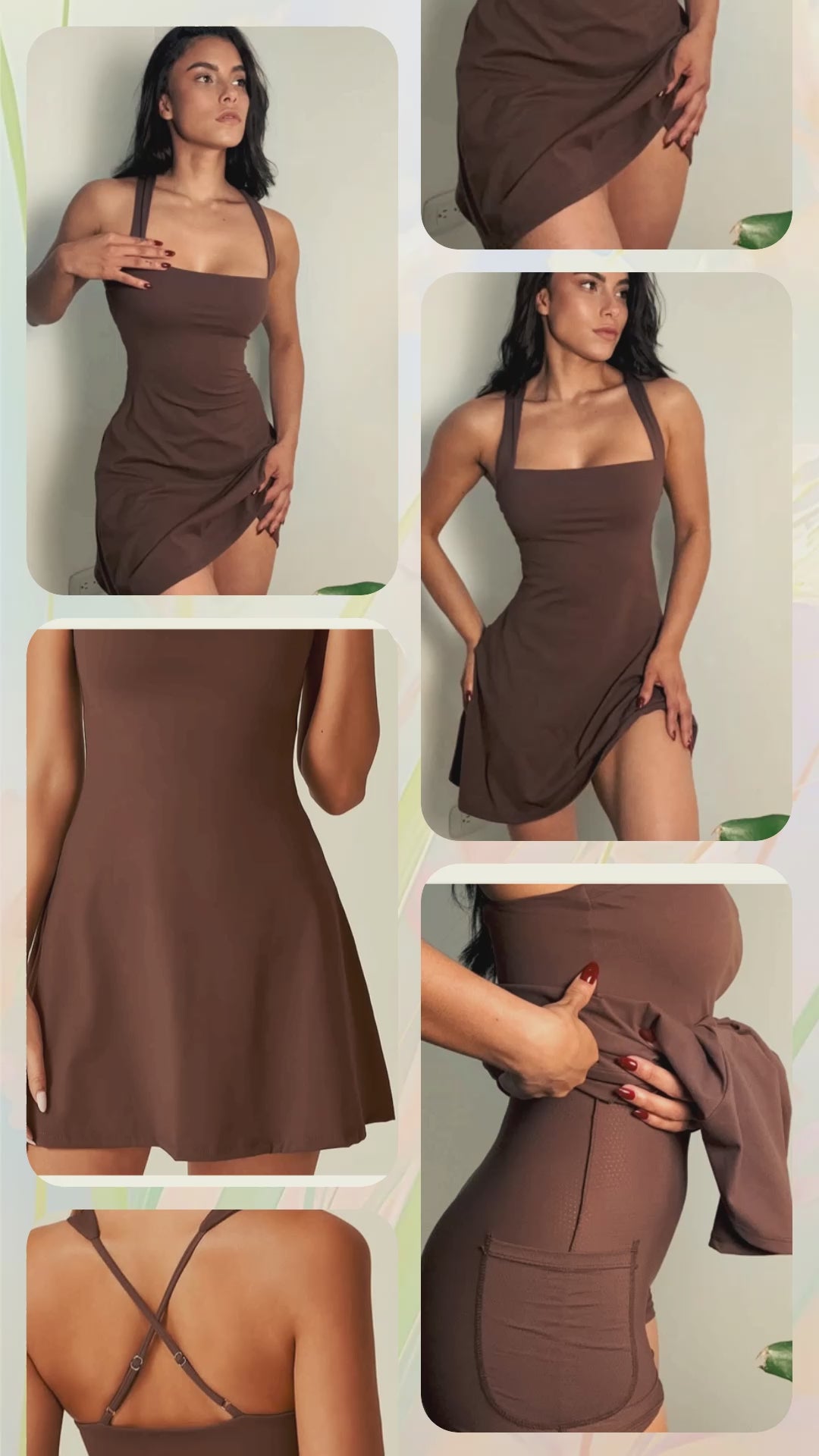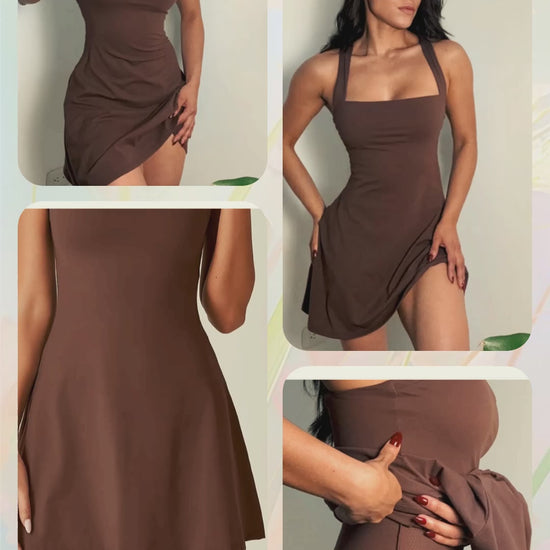 Vestido deportivo con tirantes anchos y escote cuadrado que estiliza la figura y brinda soporte. Incluye short interno con bolsillos laterales, ideal para llevar el celular o llaves de forma práctica. Su tela elástica, transpirable y de secado rápido se adapta al cuerpo, ofreciendo libertad de movimiento y comodidad. Una prenda versátil que combina el estilo chic con la funcionalidad deportiva.