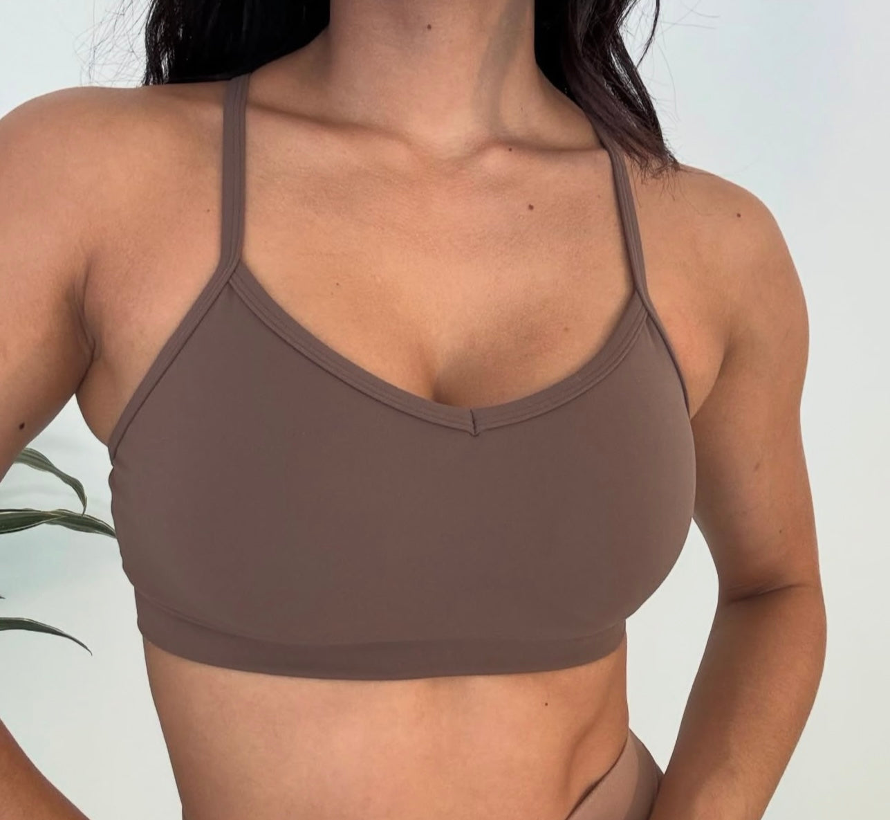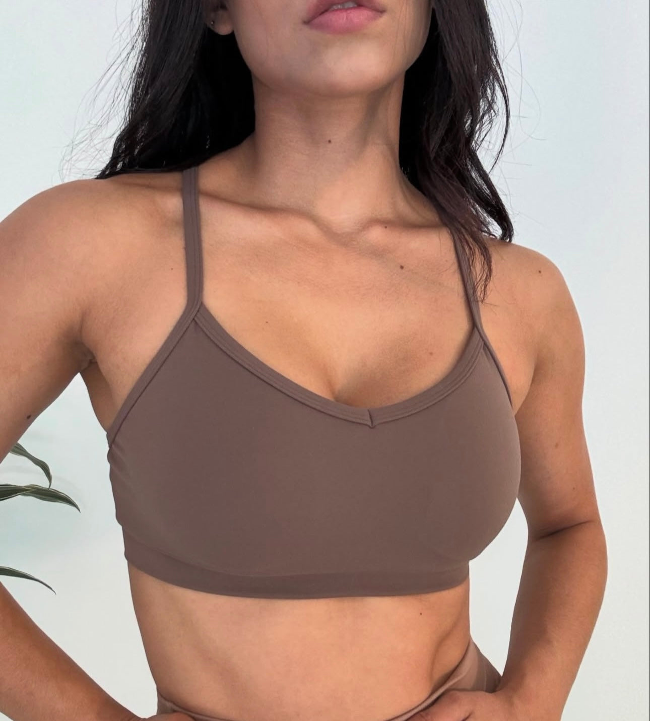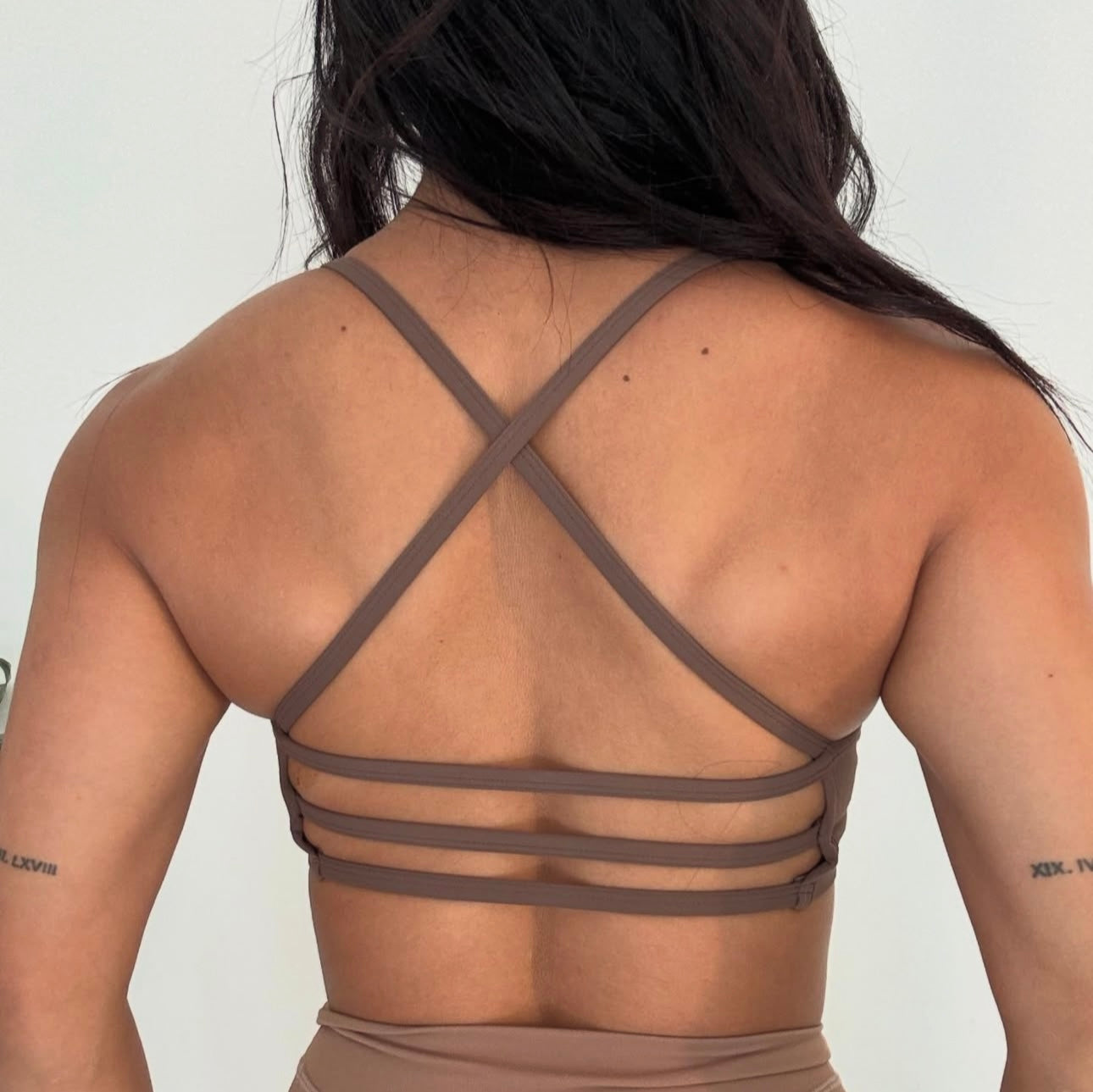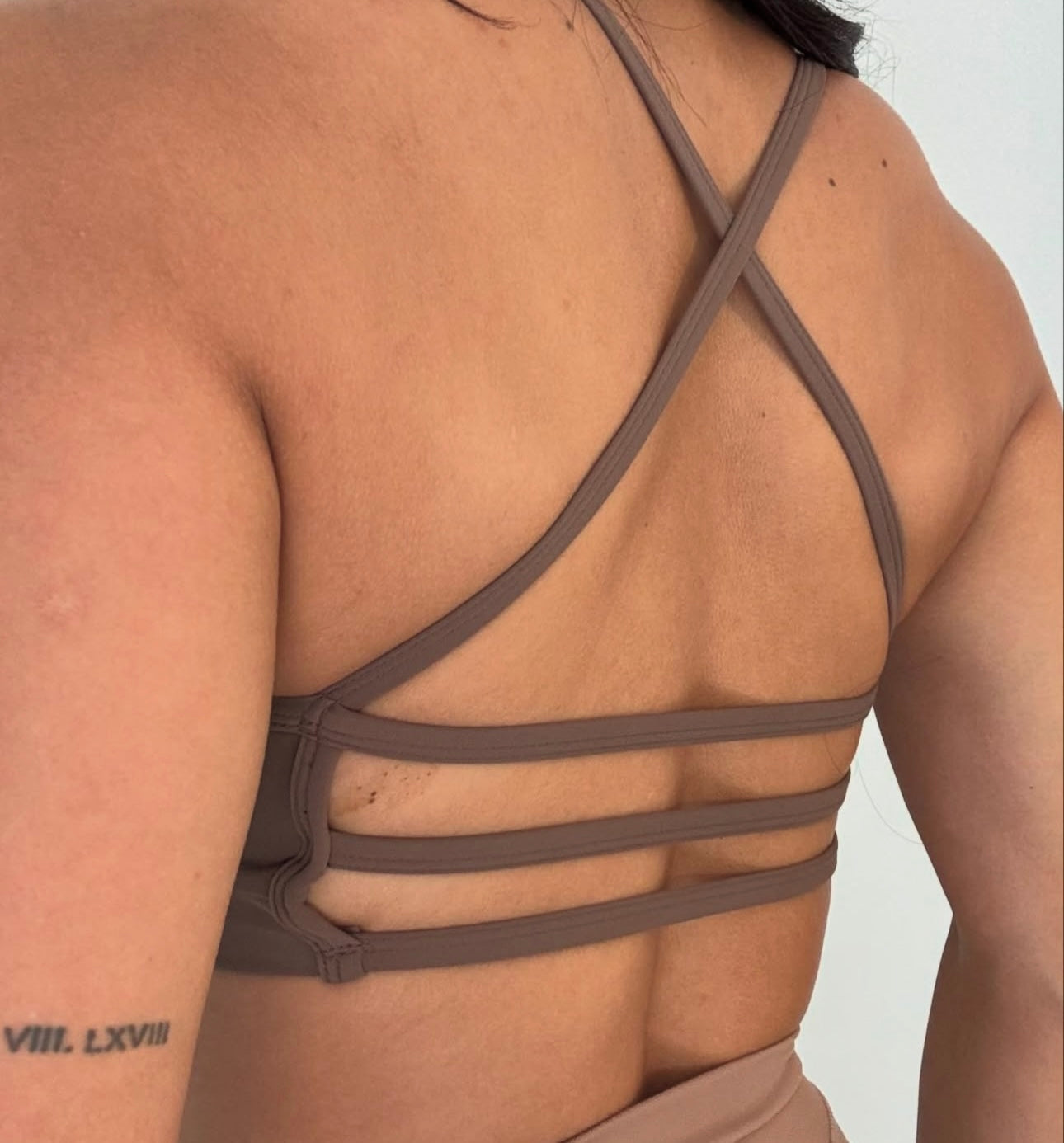 Diseñado para mujeres que aman lo simple pero con personalidad. El Top Tierra combina un frente clásico y sobrio con una espalda cruzada de bandas horizontales, que le da un toque único y moderno.