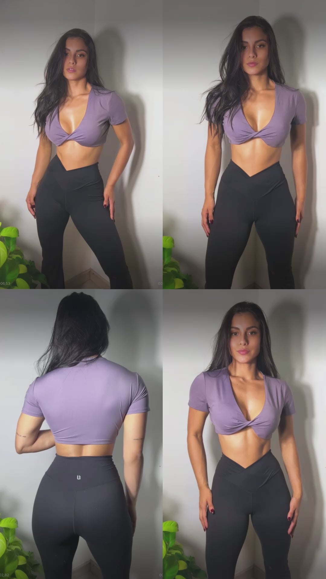 Dale un giro a tu look con el Top TwistFit Lila, un diseño moderno y femenino con escote cruzado tipo twist que realza el busto de forma favorecedora. Su corte crop y mangas cortas lo hacen ideal para entrenamientos, salidas casuales o combinarlo con tus leggings favoritos. La tela suave y elástica se ajusta perfectamente a tu cuerpo, dándote soporte sin sacrificar comodidad.